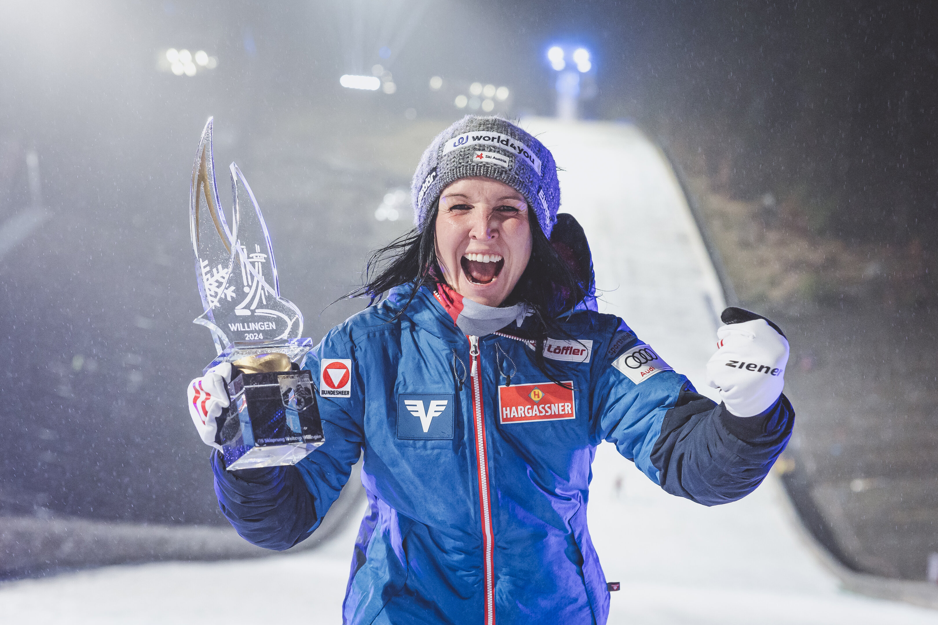 „Alles hat seine Zeit. Bereits in den letzten Jahren hat es mich extrem viel Überwindung gekostet, weit zu springen und sauber zu landen. Das wurde von Saison zu Saison schwieriger. Hinzu kommt, dass sich der Sport und seine Rahmenbedingungen stetig weiterentwickeln. Neue Regeln, technische Veränderungen und höhere Ansprüche machen es notwendig, sich ständig anzupassen und mit voller Hingabe dabei zu sein. Während der Vorbereitung auf die bevorstehende Olympiasaison habe ich gemerkt, dass es mir extrem viel abverlangt und ich nicht mehr 100 Prozent geben kann wie in den vergangenen Jahren. Wenn Mut und Vertrauen an der Schanze fehlen, dann ist man auch nicht erfolgreich. Ich habe mich daher in den vergangenen Wochen bewusst zurückgenommen und in dieser Zeit intensiv über meine Zukunft nachgedacht. Die Entscheidung, meine Karriere zu beenden, ist dabei nicht von heute auf morgen gefallen, sondern über einen längeren Zeitraum in mir gereift. Die Ereignisse vom vergangenen Wochenende habe ich aufmerksam verfolgt – sie haben mir noch einmal gezeigt, dass der Entschluss für mich der richtige ist“, so die 34- Jährige, die in ihrer Laufbahn drei Weltcupsiege feiern und sieben WM-Medaillen gewinnen konnte.