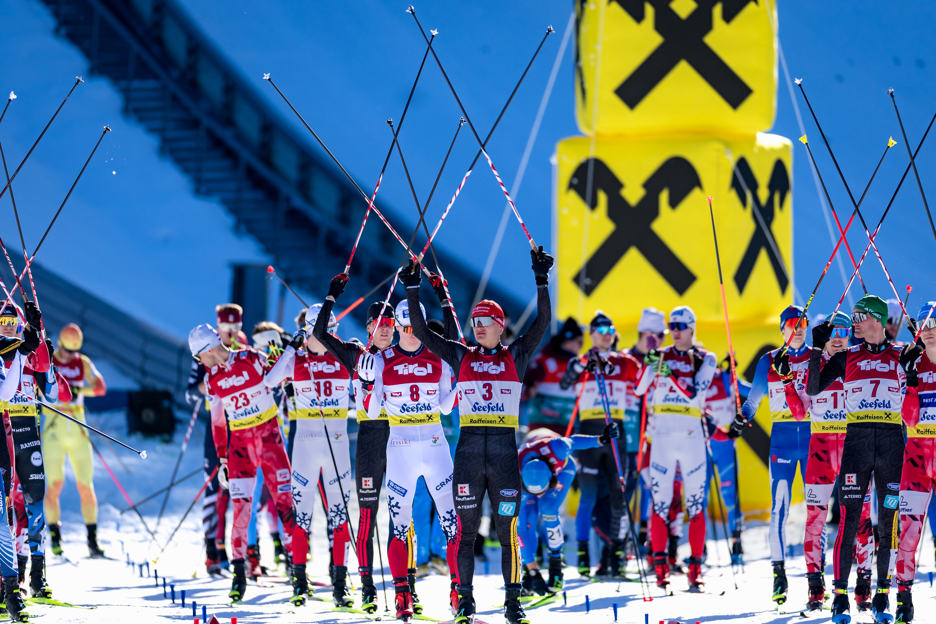 Bei den Damen endete der Massenstart mit einer kleinen Überraschung. Die US-Amerikanerin Alexa Brabec, Dritte nach dem 5-km-Rennen, setzte sich mit einem 99,5 Meter Sprung noch an die Spitze des Feldes und feierte in Seefeld ihren ersten Weltcupsieg. Das Podest komplettierten die Slowenin Ema Volavsek und die Weltcupführende Ida Marie Hagen aus Norwegen.